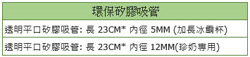 | Size | RecS2403aDX: Transparent平口矽膠吸管: Length 23cm* 內徑 5MM (加Length冰霸杯) RecS2403bDX: Transparent平口矽膠吸管: Length 23cm* 內徑12MM(珍奶專用) |
