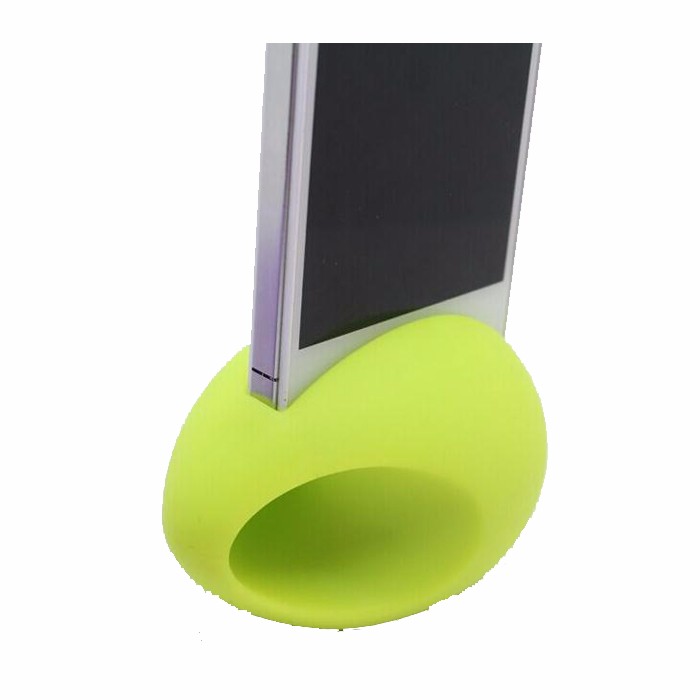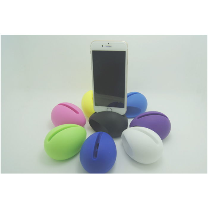 The egg-shaped mini silicone speaker helps you lay our phone upright or horizontally on the table.