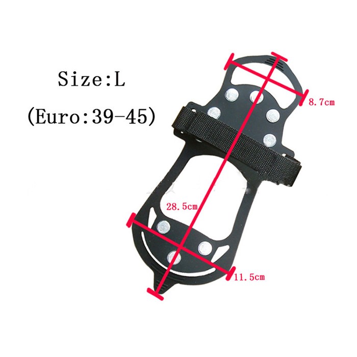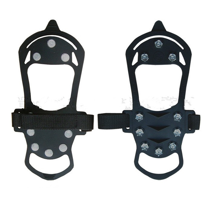 The 8-teeth crampon has strong nylon webbing with high elastic rubber ring that can be put on and take off of shoes quickly.