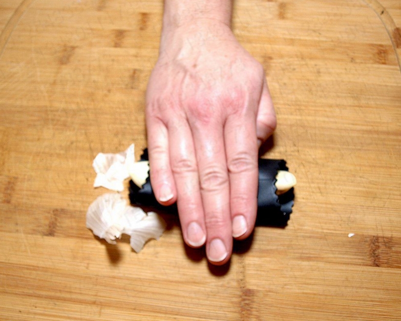 Simply put the garlic into the peeler, and roll the peeler back and forth on the table to quickly peel off the skin of the garlic, and then you can easily obtain a complete and skinless garlic clove.